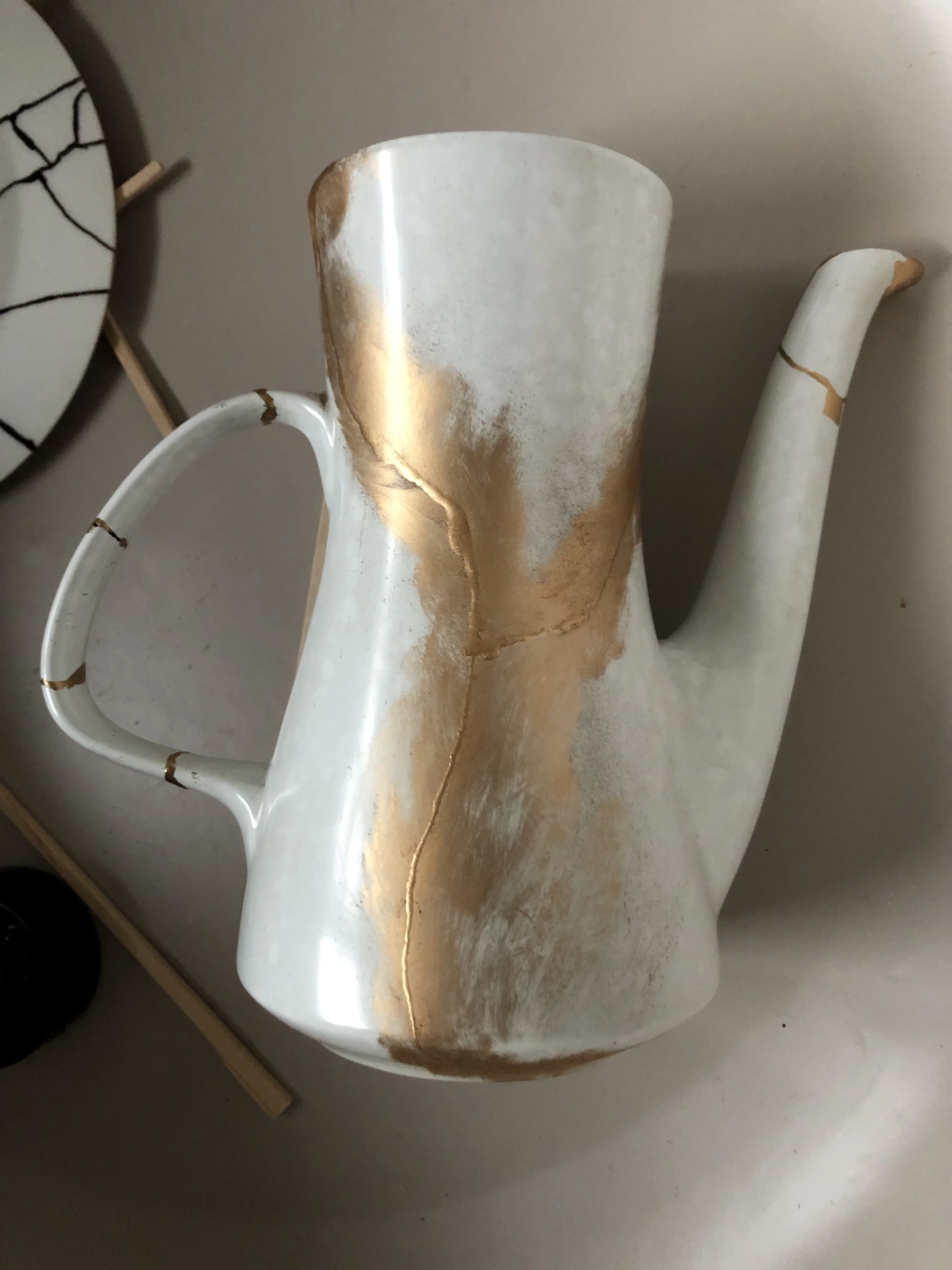 What do you do when one of your cats knocks your favourite coffee pot off the shelf and breaks it? The story behind one of my first kintsugi projects.