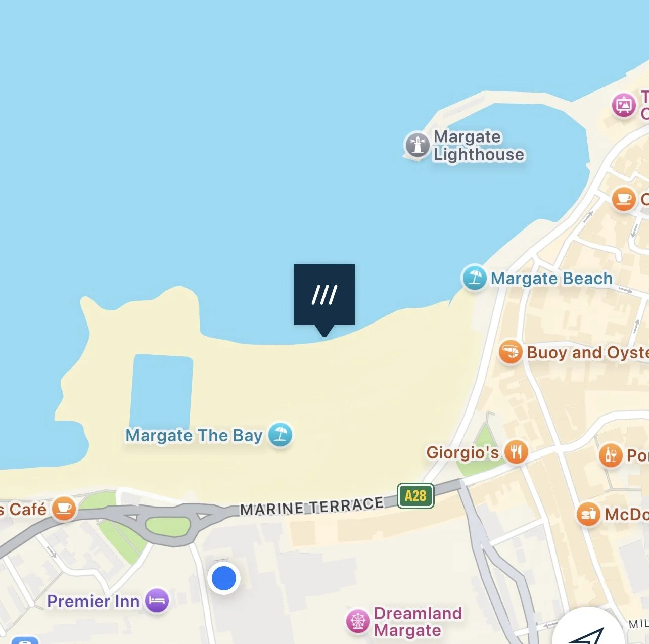 Each work is titled with the What3Words location where the jellyfish was found, a precise three-word code that anchors the moment of discovery to a single point on the map. These coordinates act as spatial anchors, fixing the transient and the serendipitous to the geography of the shore forming a poetic cartography of Margate’s coast.
